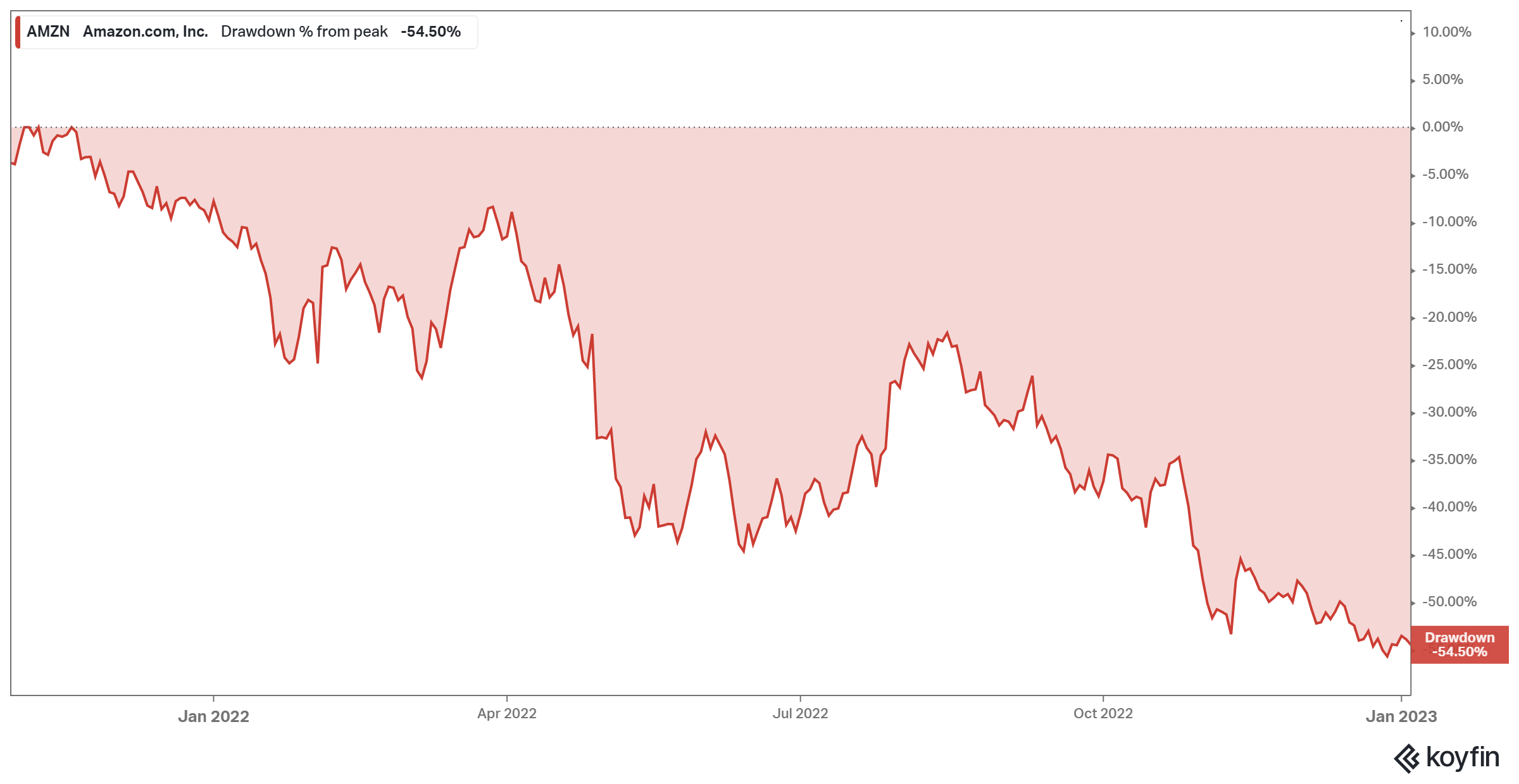 Let’s talk about the stock. Along with the rest of tech it was shellacked in 2022. Rewind back to November ’21 when the selloffs began in earnest and as of today, the drawdown is 55%. Cut in half.