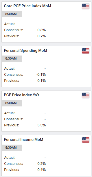More econ numbers including the Fed preferred PCE-pricing index on tap along with personal spending and income.