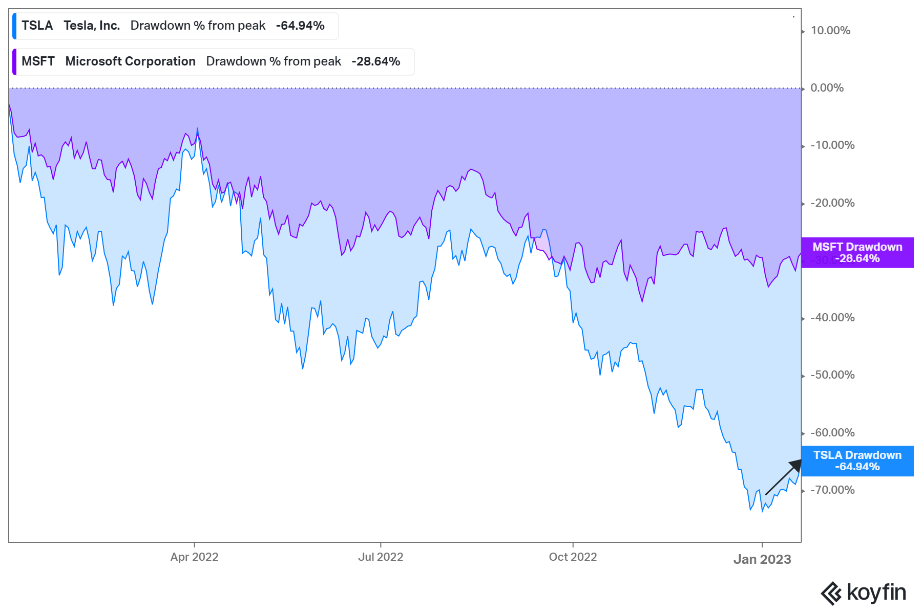 TSLA earnings. Reatail investors have a newfound thirst for the shares it would appear. They have turned up from a 70%+ drawdown since the start of last year. Could be short lived, we will see. Microsoft is added below also for comparison.