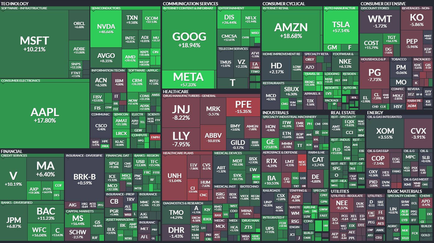 Here is another way to look at it in terms of YTD returns. Below is the finviz heat map of the S&P 500 YTD:
