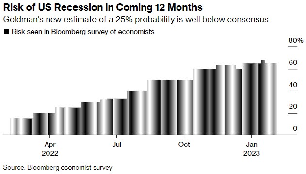 Inflation and higher rates may stick around longer than we think. The target inflation rate is still 2% which suddenly seems light years away from recent readings. If the economy manages to stay relatively healthy and demand stabilizes, inflation may not retreat as quickly as the Fed would like. Goldman has recently reduced a recession probability to 25%. An outlying opinion perhaps, but one that does further support the “higher for longer” narrative.