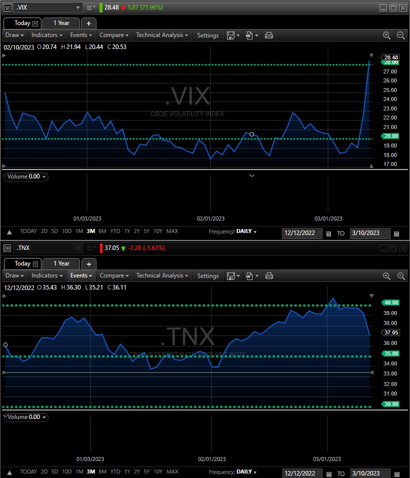 That doesn’t mean it won’t spook Mr. Market, it already has. As I am writing this, before shutting down for the weekend the VIX is up 25% back over 28 and the 10yr note is down below 3.7%. It was hovering around 4% just two days ago. Fear + Flight to Safety.