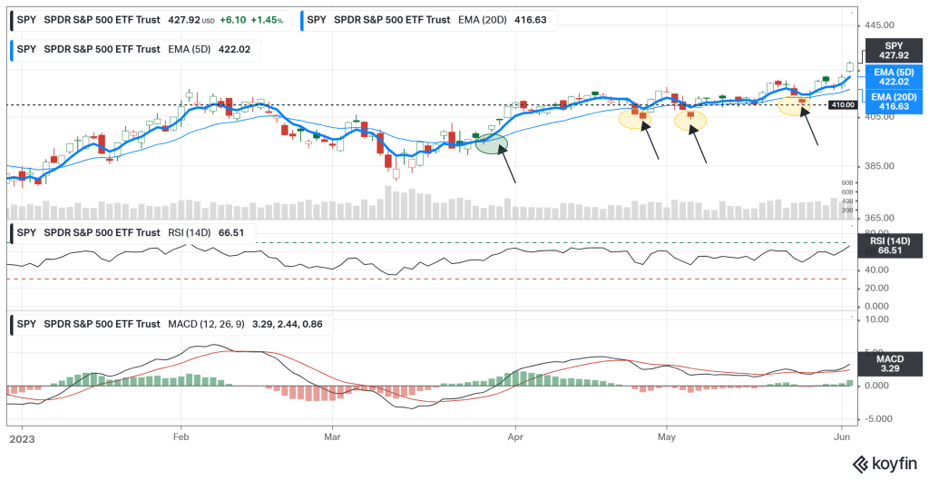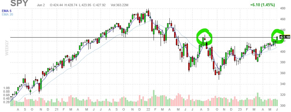 I don’t know, let’s zoom out. Switch back to finviz and look at the weekly view of SPY: