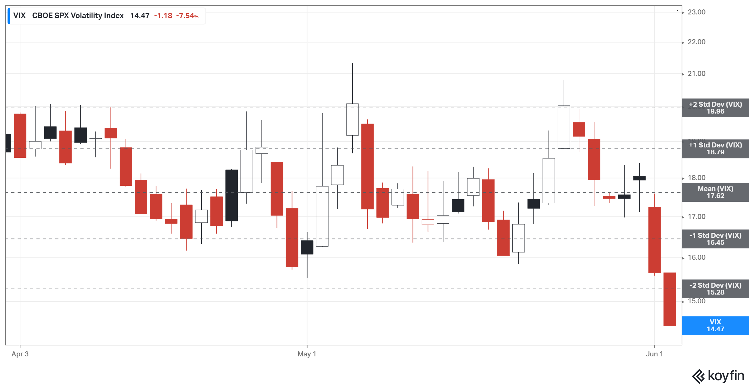 The VIX traded at a 14 handle today. 14. Fourteen.