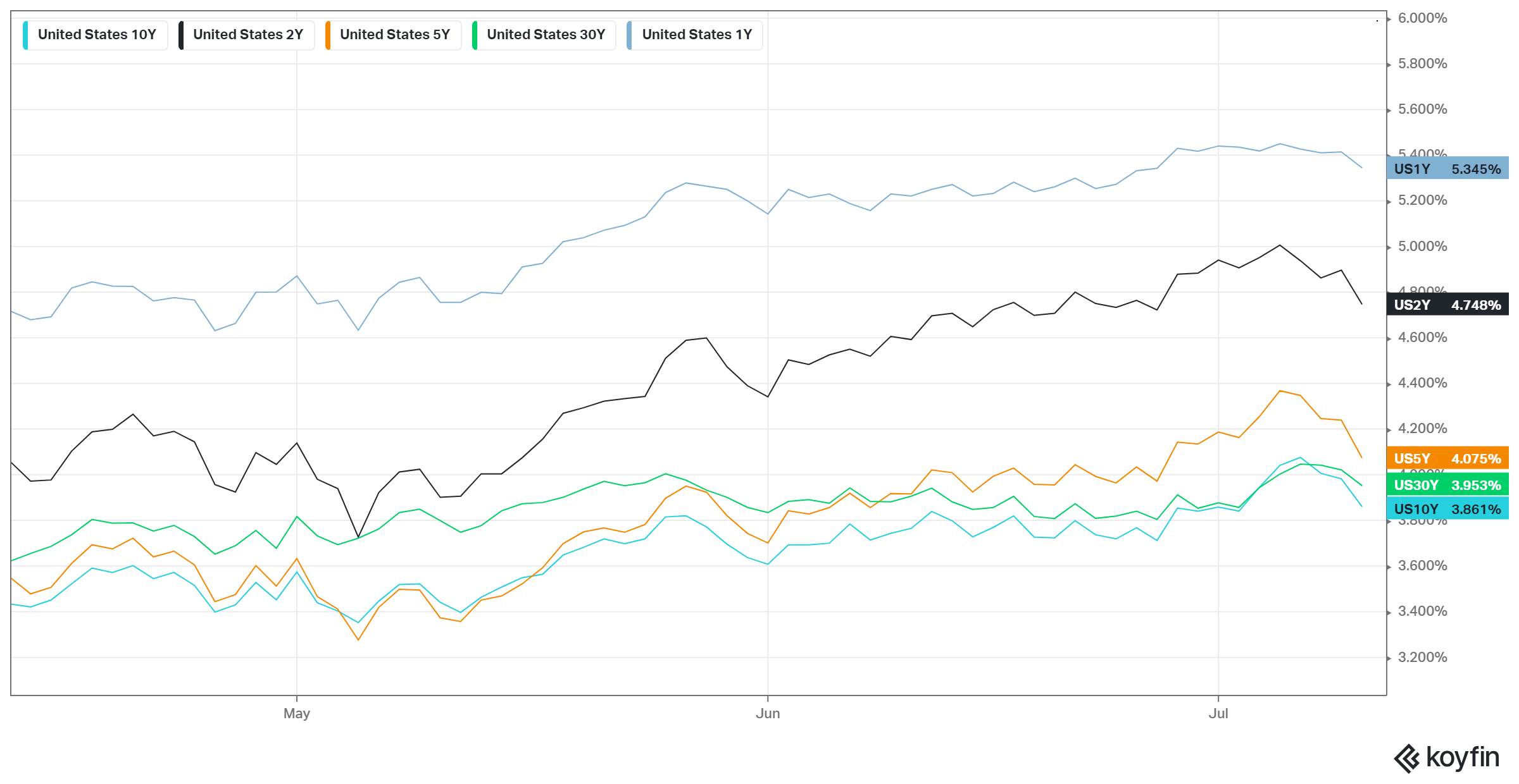 With bonds heading higher, yields across the board took a breather visible by the tick down:
