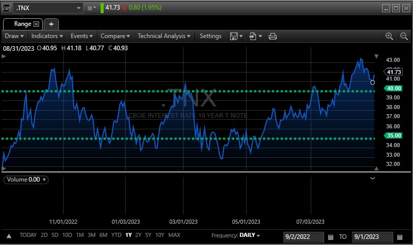 They have been whipsawing as of late, especially the 10yr around the 4% level: