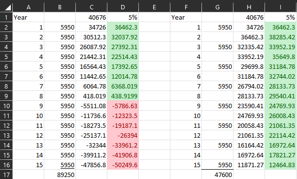 Assuming 5% interest or rate of return will extend that out to ~8 years. If you assume you only hit the max out of pocket every other year the math works for the full 15, as it should.