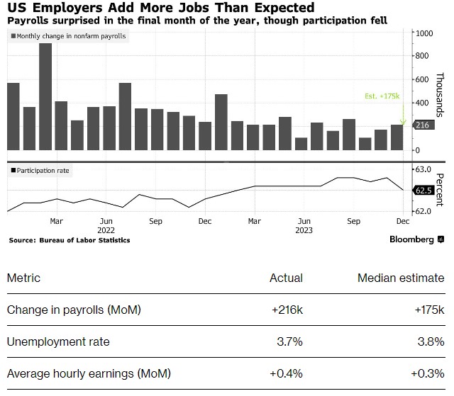 The March rate cuts being priced in, the Christmas miracle if you will, are slowly coming back to reality. The Street is still holding out hope however, even after today’s jobs release. CME’s Fed Watch tool sits at about a 64% chance of a 25bps cut in March: