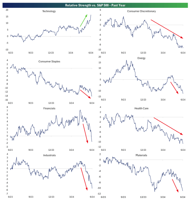 Reason for that is simple, this market has turned into a one-trick pony. NVDA. The 10:1 stock split only helped fuel the fire. Party like it’s 1999?