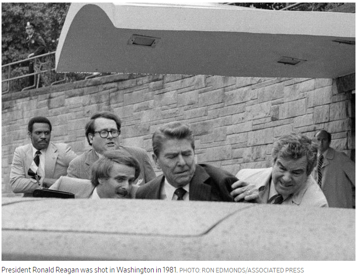 I was only seven at the time, but I still remember the video from that day, The Gipper being shoved into the limo in what seemed like two seconds. He would later wave to supporters from the upstairs window of a hospital in a red robe if I recall.