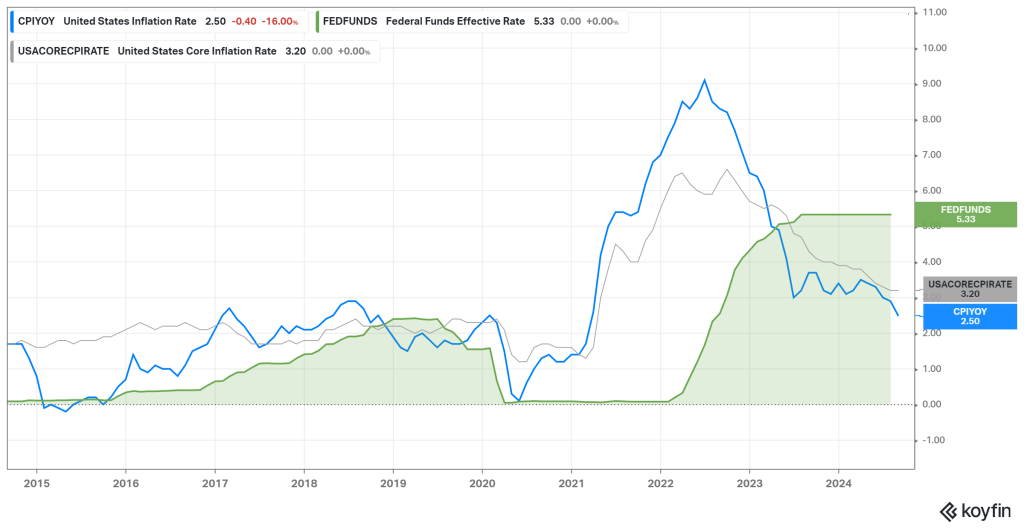 I suppose it’s worth revisiting one final time just how swift this hiking cycle was and how long we have been camped out higher. I always compare Fed Funds to CPI so you can see the lag effect:
