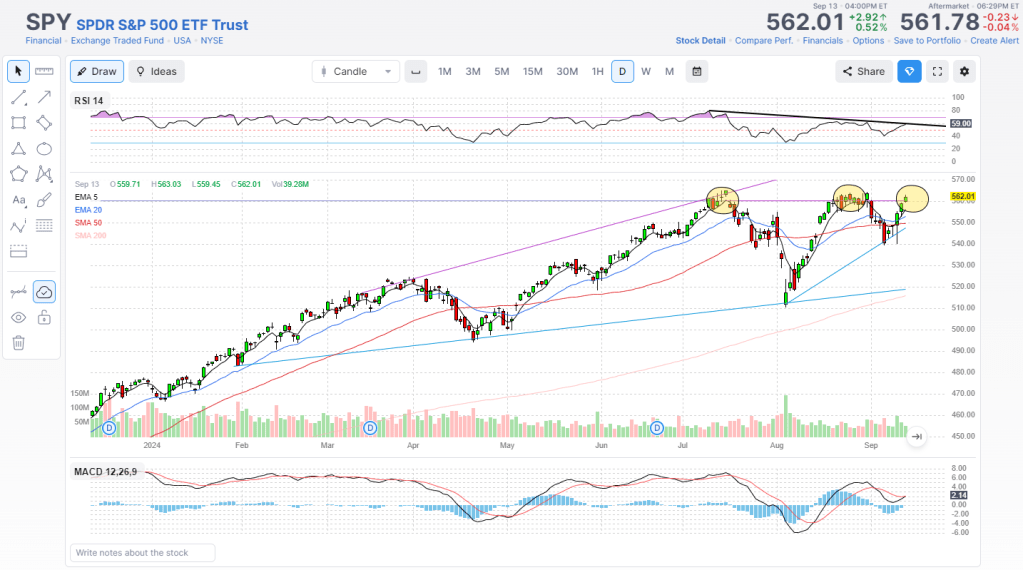 As I type this, the odds between a 25bps and 50bps cut are a coin toss. 50/50! I find that hard to believe. If we get what was once a long expected 25 will the market now sell off in disappointment? What do they know that we don’t?! All of this will be in play Wednesday afternoon at 2pm.