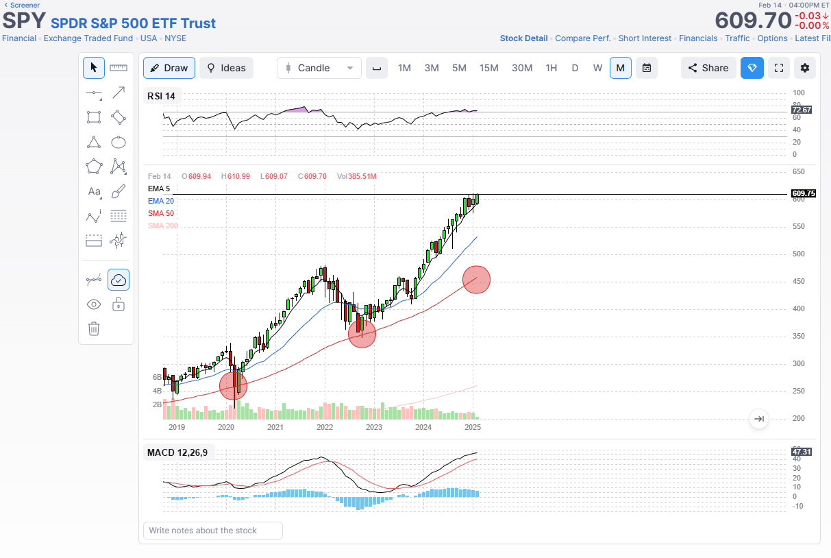 In my mid-February The Slow Lane post I zoomed out to a monthly view on SPY and was taken aback by how toppy it appeared. I didn’t see it at the time but a discerning eye will also spot the RSI starting to roll over: