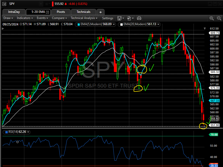 That snapshot above was taken on Valentine’s Day , I drew a line at 609.75 which I carried over the the daily chart for reference. Little did I know the carnage that would follow…