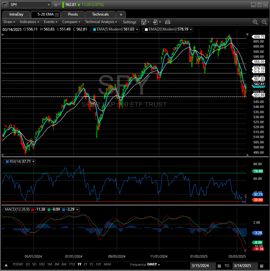 The chart below was from March 11, as I started to check off gap fills and prior bottom takeouts. The larger dashed line at the bottom at 551.90 marked the technical 10% “correction” mark, we checked that box too.