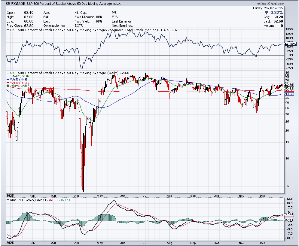 MARKET BREADTH (% OF S&P 500 STOCKS ABOVE 50 SMA)